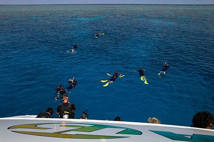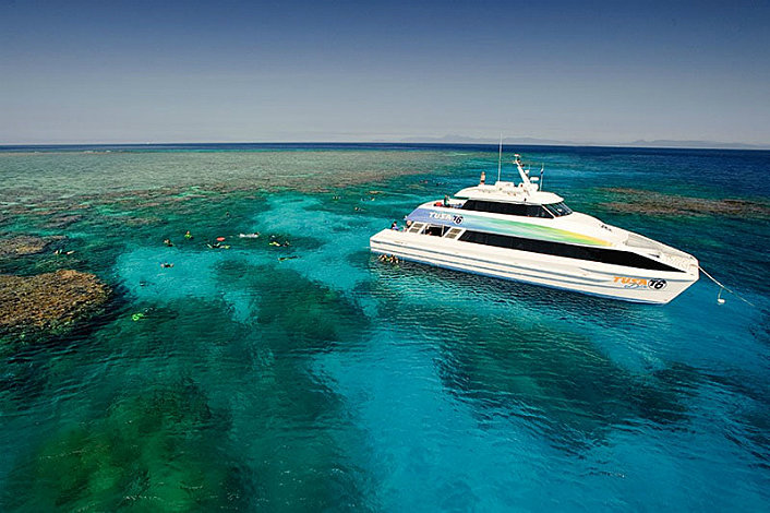 Boarding at approximately 7:40am daily from A Finger, Cairns Marlin Marina, you will travel aboard the magnificent catamaran, for an extraordinary full day adventure, snorkeling and diving the outer coral gardens at the edge of the Great Barrier Reef. From a selection of 16 exceptional reef sites, you will travel to the day's two selected sites. With water level platforms allowing divers and snorkelers to glide straight from the boat to the reef.