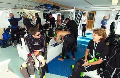 Monday: Boarding Spirit of Freedom at 11:15am at Trinity Wharf in Cairns (complimentary transfers from Cairns city hotels are available) for a 12 noon departure. Lunch will be served on board while we cruise to the Great Barrier Reef to the north of Cairns, for an afternoon orientation dive and a twilight or night dive.