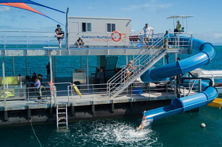 In Early 2017 there was a new pontoon installed on Moore Reef, this new platform includes a waterslide.