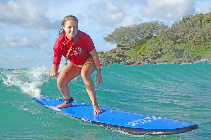 Learn to surf Noosa in waist deep water with friendly instructors that are highly experienced and fully qualified to get you surfing and having fun in a safe, uncrowded environment. We guarantee that you will stand up on your first learn to surf lesson!