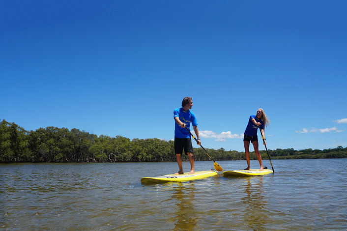 Find out why Stand Up Paddle boarding (SUP) is one of the fastest growing water sports in this 2.5 hour group lesson SUP experience. We will pick you up from central Byron Bay and transfer you to our fabulous SUP location, Brunswick River. The lesson will include all equipment, expert instruction and transfers. Experience the thrill of walking on water while being surrounded by nature, you will even have the chance to spot incredible marine life such as turtles and dolphins.