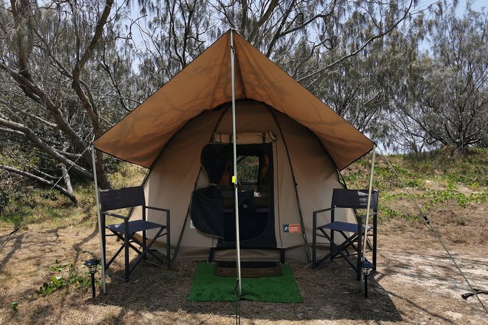 This 2 day camping tour includes high quality, pre-setup tents, off the ground camp beds, foam mattresses, sleeping bags, pillow and pillow case. The camp also includes a toilet and 2 x camp showers that have HOT water and a comfortable seating area for you to enjoy your breakfast and dinner which is cooked for you lovingly by our island team. All your meals from lunch on the first day to lunch on the last day are included and cooked for you. Your ALL INCLUSIVE ticket also covers all the fees, permits, ferry tickets, 4WD's & fuel and one of our Authentic Australian tour guides.